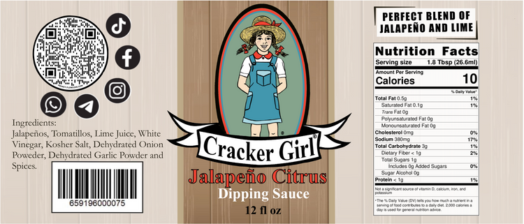 NEW Recipe!!! One of our most delectable sauces, Cracker Boy Jalapeno Citrus Sauce, offers an eternal happy aftertaste and a savory burst in your tongue. Our Jalapeno Citrus sauce is made with fresh, local citrus that is combined with the jalapeno's spiciness. This well-balanced flavor pairs great with tacos, fish, or any other appetizer complements.