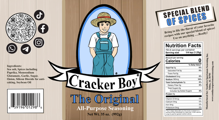 Cracker Boy's Original All-Purpose Seasoning adds flavor to all of your favorite dishes! We combine a variety of 10 fresh spices in a specially made blend to produce a delectable experience you'll remember for the rest of your life.